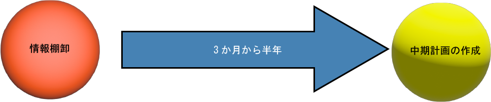 情報棚卸から始め、3か月から半年かけて中期計画を作成します。
